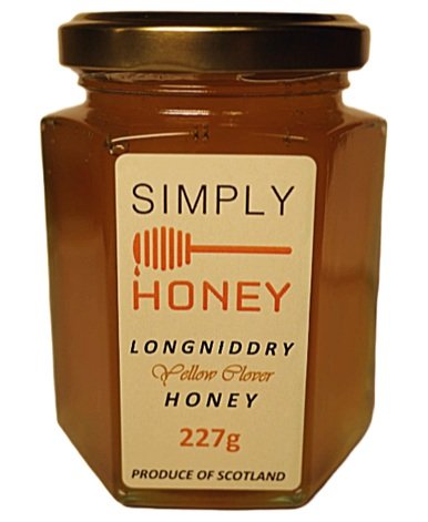 A single 227 g jar of Longniddry Yellow Clover Honey